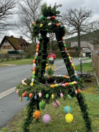 Die Cottenbacher Dorfgemeinschaft hat in der Dorfmitte erneut einen Osterkranz aufgestellt und mit farbigen Ostereiern verziert. Wir möchten uns sehr herzlich bei Herta, Hilde und Gisela für die Initiative und die Gestaltung des Osterkranzes bedanken.